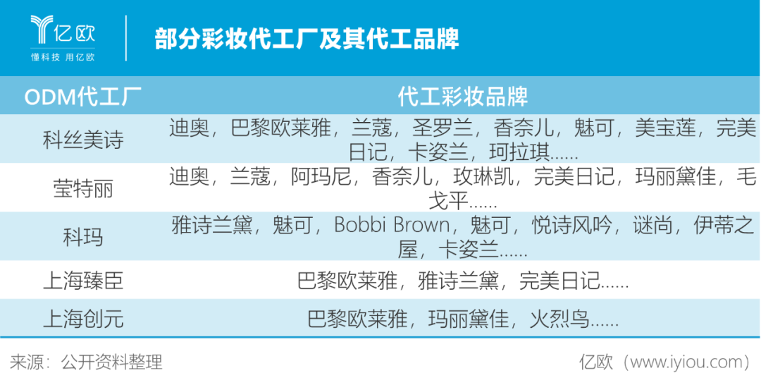彩妆产品生产端有自主生产和外包生产两种模式。少数品牌有自己独立的生产线,但大部分采取ODM和OEM两种代工模式。