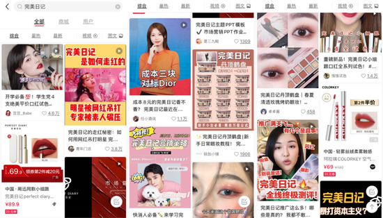 有博主称,完美日记在KOL投放上非常激进,只要看到不错的博主,即便跟美妆没什么关系、粘性不错,都会接到完美日记的广告。2019年,完美日记在抖音、B站、快手全平台投放,新兴起的短视频、长视频平台一个都没落下。据每日人物报道,有业内人士透露:完美日记在抖音上的一次开屏投放,刊例价就在100万元左右。