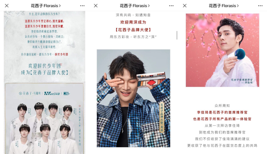 花西子短时间内签下多位明星代言人来源/花西子公众号
