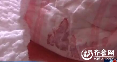 这个纸尿裤上的红色污渍,孩子的家长质疑是血。