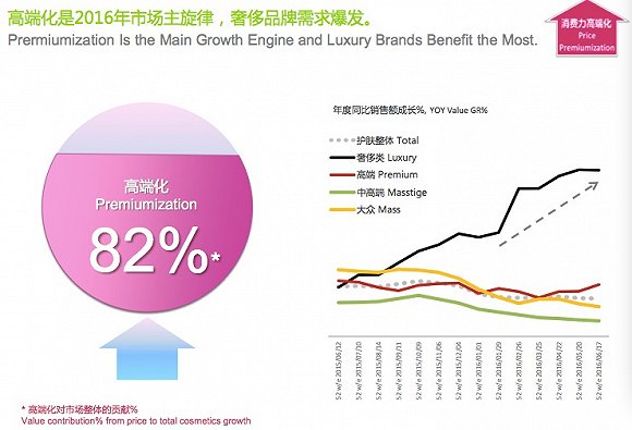 美妆品类保持两位数的高速增长,高端化需求今年对市场整体的贡献率达到了82%。