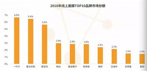 值得一提的是,一叶子以6.6%的份额,位居面膜线上TOP10榜单之首,紧随其后的是膜法世家、御泥坊,在该榜单中,本土品牌占据七席。