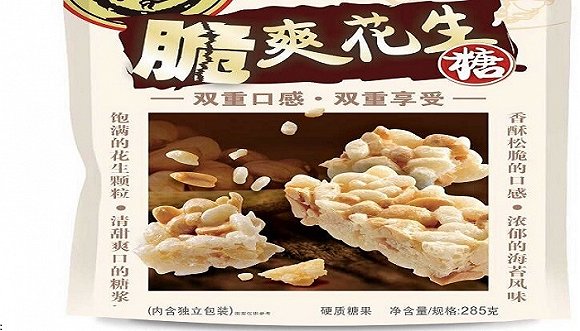 另一类是健康概念的美味年货,如麦谷乐饼点礼盒、脆爽花生糖。