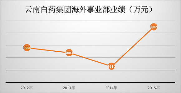 近年来,云南白药一直在努力进入海外市场。2013年2月,云南白药被香港卫生署检出含有未标示的毒性成分——乌头类生物碱。香港与澳门当即分别下令回收该系列药品。虽然云南白药在事发第二天即作出说明,承认其配方中含有乌头碱类物质,并称该物质通过炮制可使毒性消解或减弱,但仍未能阻止事件的发酵。事件影响了香港、澳门两地的云南白药牙膏销售,虽然两年后云南白药海外业绩实现大幅度反弹,2015年实现了两倍多的增长,但整体营收额体量仍然较小,仅占公司总收入的0.14%。