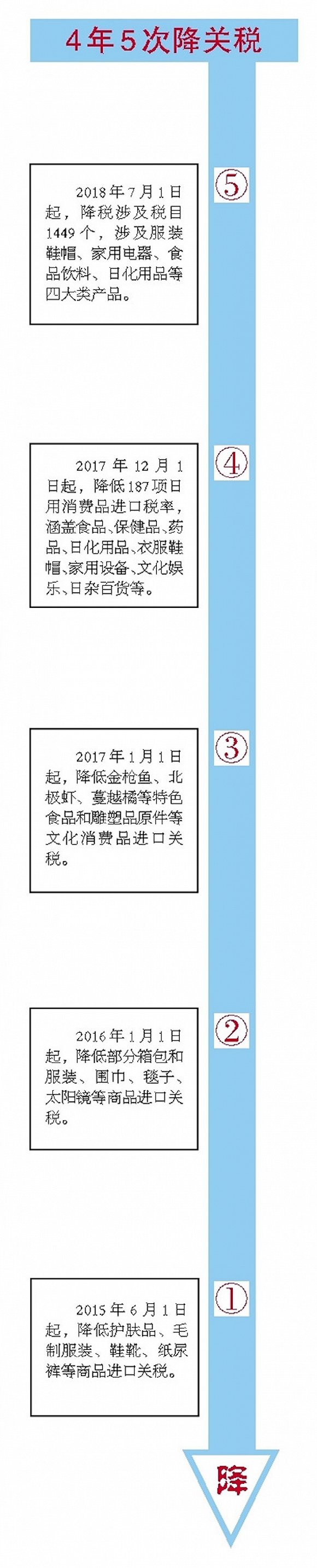 实际上,自2015年以来,中国已4次降低日用消费品进口关税,主要针对国人境外消费比较集中、国内一时供给不足的优质产品,包括毛制服装、部分鞋靴、太阳镜、保温杯、纸尿裤、部分特色食品和保健品等。而此次降税涉及税目是前4次总数的7倍。据财政部关税司司长冯晋平介绍,这次降税涉及到日用消费品税目的70%以上,平均税率由15.7%降为6.9%,平均降幅55.9%。涉及一般贸易额约380亿美元。