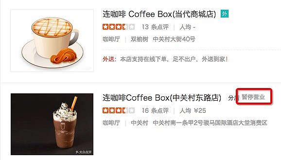 大众点评网显示,北京的连咖啡有48个,其中歇业、尚未开业的门店有21个,包括公主坟翠微、双井、方庄、安贞等门店。从点评信息来看,有些门店甚至是闪开、闪闭。