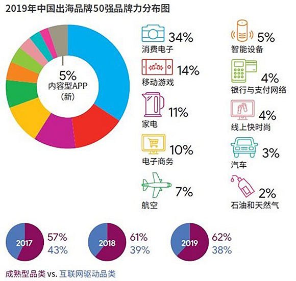全球最大的广告传播集团WPP与凯度发布的《2019年BrandZ™中国出海品牌50强报告》显示,今年中国品牌的品牌力指数同比增长15%,去年指数增幅仅为5%。