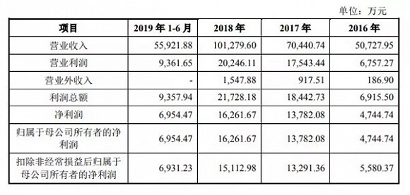 壹网壹创起于百雀羚、盛于百雀羚、至今仍依赖百雀羚,是百雀羚最大的经销商。财报显示,壹网壹创前三年的营收几乎全部来自于百雀羚,最近几年随着业务规模扩大,百雀羚收入占比逐渐降低,但到2018年仍有60%以上。2016年至2019年上半年,壹网壹创营收规模分别为5亿、7亿、10亿、5.6亿,净利分别为4744万、1.4亿、1.6亿和6954万。