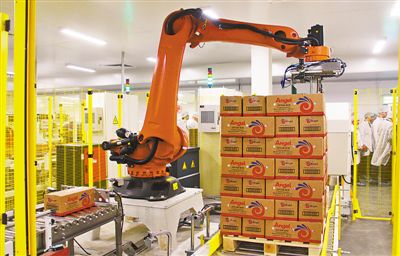 图为2月27日,酵母工厂内的工业机器人正在作业。