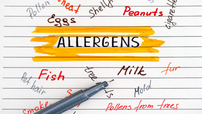 欧盟消费者食品信息条例列出了14种必须在食物标签上特别标注的过敏原:包括芹菜、含麸质的谷类、蟹和虾等甲壳类动物、鸡蛋、鱼、羽扇豆、牛奶、软体动物、芥末、坚果、花生、芝麻、大豆、二氧化硫和亚硫酸盐(如果超过百万分之十)。在美国,有八种主要的过敏原:牛奶、鸡蛋、鱼、甲壳类鱼类、坚果、小麦,花生和大豆。美国食药管理局正在考虑将芝麻列入该名单。