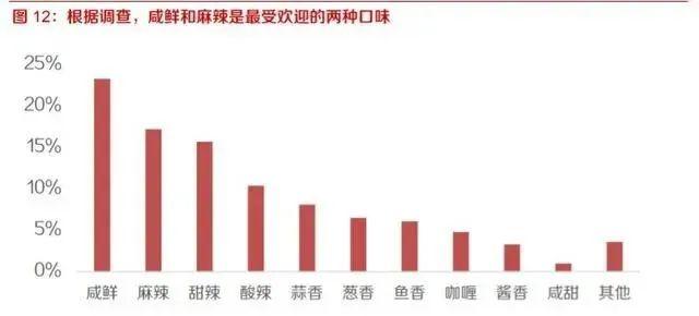 咸鲜和麻辣是中国人最喜欢的两大味道,受众广,消费群体广泛。