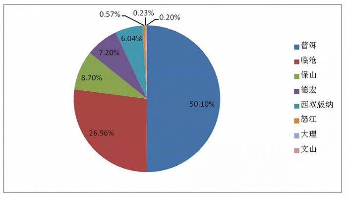 云南咖啡主产州种植面积比率