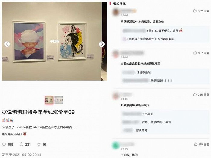 对于新品涨价这一举动,泡泡玛特并未作出特别说明,但玩家们的不满情绪已经开始发酵和扩散。快速消费品网了解到,在盲盒玩家交流群、微博、小红书等平台,许多玩家吐槽泡泡玛特近期的涨价行为。在众多指控声音中,关于泡泡玛特的品控和售后服务的不满之声最多。