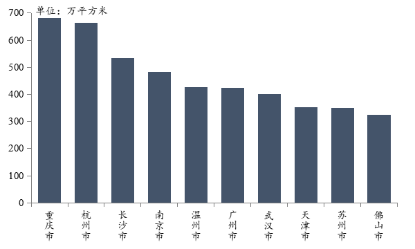 从上半年来看,重庆、杭州及长沙的土地最受欢迎,位列代表房企拿地城市面积前三。中指研究院的数据显示,今年上半年,50家典型房企拿地面积TOP10城市中,重庆累计拿地面积位列第一,杭州和长沙占据第2、3名。温州、佛山作为非集中供地城市入榜,分别位列第5、10名,其中佛山为TOP10城市中唯一三四线城市,反映出该城市颇受房企关注。