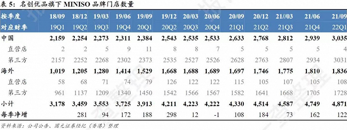 2021财年,情况有所好转,但“元气”没有完全恢复,每季度增加的门店数均低于2019财年。2022财年依然如此,以往年净增门店数最多的Q2财季来比,2022财年Q2,名创优品新增门店174家,低于2021财年Q2新增的184家、2020财年Q2新增的298家和2019财年Q2新增的281家。