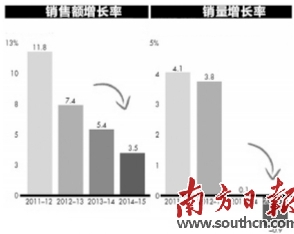 6月28日,贝恩公司与凯度消费者指数发布的《中国购物者报告》指出,2015年中国快速消费品市场的销售额增速达到3.5%,为五年来的最低点。报告认为,2015年快消品销量下滑,价格增长放缓,拖累了整体增长率。