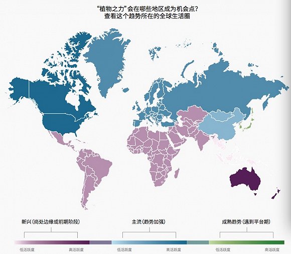 越来越多的制造商推出植物配方,或者强调植物所带来的特别口味、营养强化和多种功能。2016年,这股趋势开始迅速发展,“植物”在产品名和营销中均占据了显著位置,比如依云在欧洲推出了水果植物口味的矿泉水,美国WhiteWave公司旗下无乳饮料子品牌Silk打出了“DoPlants”的广告语。