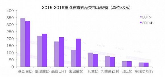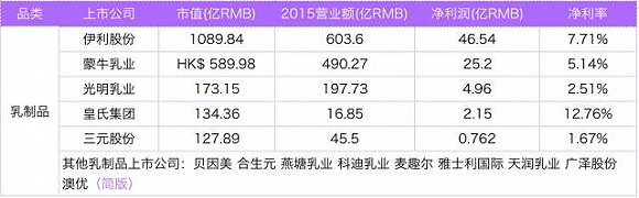 液态奶:2015年1至9月中国液态奶整体销售额达1024亿元。