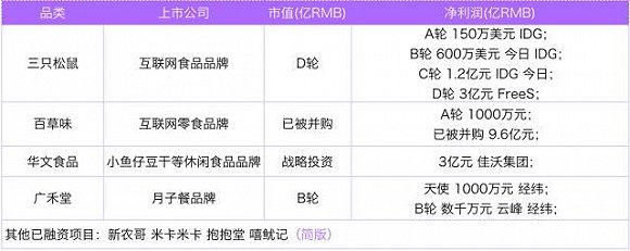 已获得资本青睐的零食电商、休闲食品品牌公司: