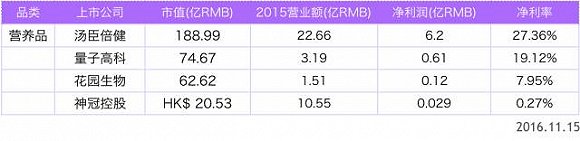 2014年我国保健食品行业规模以上企业483家,行业年销售总收入为1932.2亿元,实现利润总额325.14亿元。2015年我国国内保健品消费市场规模为2360.64亿元,截至2016年5月25日,我国共批准了16443个保健食品,保健品市场还可以容纳更多的好机会。