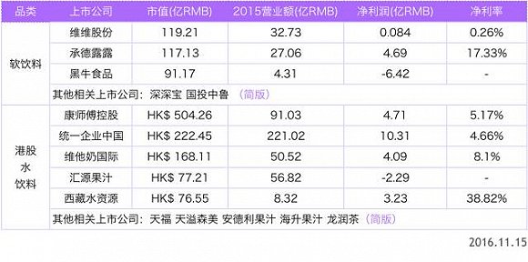 酒类以外,软饮料为食品消费品中第二大品类,2015年国内软饮市场零售规模近5500亿元,全行业增速为5.66%。