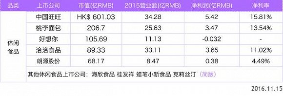 坚果:2014年,坚果行业市场规模约500亿元,品牌坚果行业规模超过100亿元;