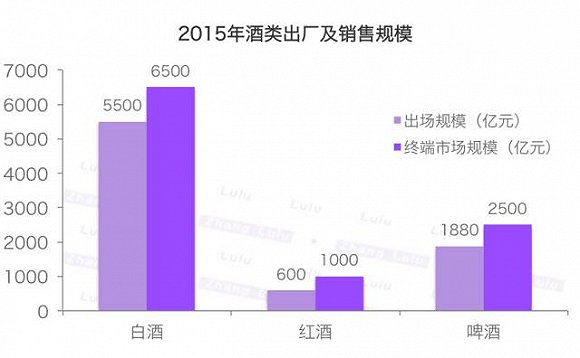 白酒:2015年1-12月,全国白酒企业共约2W家。规模以上白酒企业累计完成销售收入5558.86亿元,同比增长5.22%;累计实现利润总额727.04亿元,同比增长3.29%。