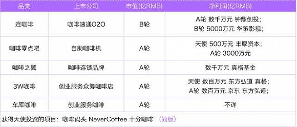 咖啡的投资不仅局限于消费升级,当与创业结合起来,对投资机构增添了战略投资价值,国内获得主流投资机构投资的咖啡相关团队: