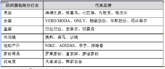 纺织服装主要代表品牌