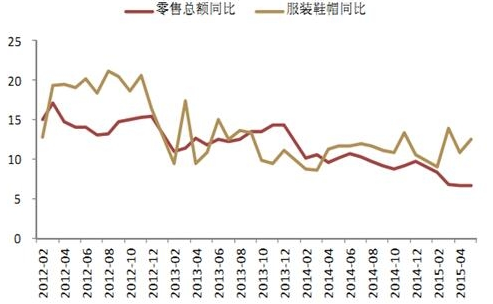 2014 年限额以上的服装、鞋帽、针纺织品类企 业商品零售额为 12,562.93 亿元,同比增长 10.85%。