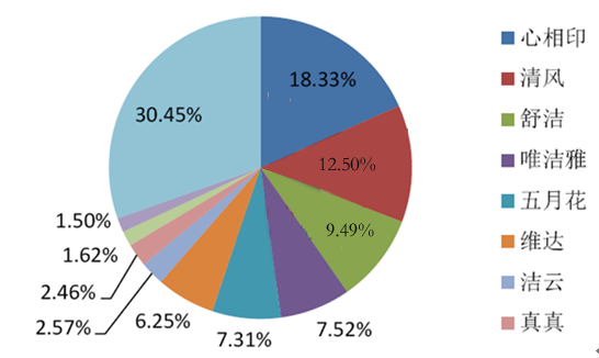 2014年我国各类女性吸收卫生用品市场份额