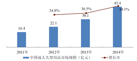 2011-2014 年中国成人失禁用品市场规模