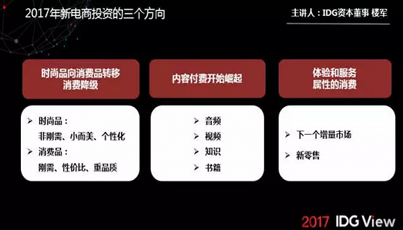 本文内容出自 IDG资本董事楼军在「2017 IDG VIEW」的演讲分享以及新电商圆桌探讨。