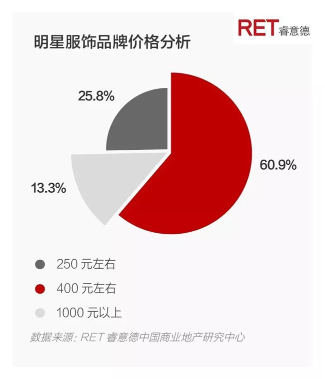 客单价千元以上的明星品牌占13%。此类开店明星平均年龄50岁,其年龄层次代表的圈层对质量与设计有更高的要求,并愿意为之买单。与品牌定位匹配的明星形象,增加了品牌的附加值。此类品牌,主要面向中高端消费者,开通电商渠道的仅占两成。
