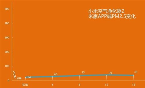 而从米家APP上看到的PM2.5数据变化幅度更小,16分钟后检测到的室内空气质量仍处于优良状态,一直处于最低档位运行,换为纯净水之后对它的正常运行基本没造成影响。