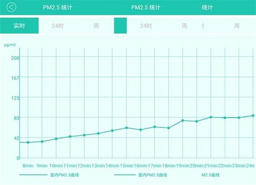 通过米家APP可以实时查看小米空气净化器2的检测到的PM2.5指数,另外352 PM2.5检测仪的实时数据在手机端最终会以报表形式呈现。