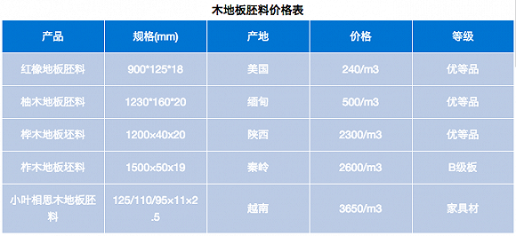 亚花梨:近期由于亚花梨原产地非洲地区的封关,很多地板料都无法进入国内市场,导致近期国内市场的亚花梨地板紧缺,也导致了价格上涨。现阶段,广东市场610×123×18mm亚花梨实木地板商家报价450-500元/平方米。
