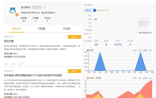据黑猫投诉、聚投诉,关于盒马鲜生的投诉已高达数百条,食品安全问题为投诉重灾区。6月2日,有用户投诉称,在盒马鲜生购买了鸡蛋后,发现鸡蛋变质、发出臭味,但距离生产日期仅过了三天;5月29日,有用户投诉称,在广州白云区新世界云门盒马鲜生超市购买食物使用后,出现恶心呕吐、乏力高烧等情况,随后被诊断为急性肠胃炎,而所购买的食材为诱因。