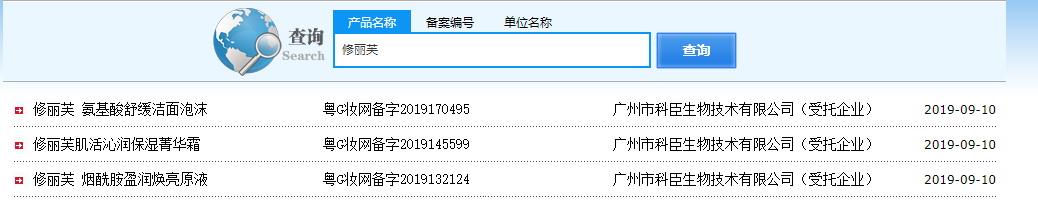 据企查查,广州市科臣生物技术有限公司是广东科玮生物技术股份有限公司(以下简称“科玮股份”)的全额子公司,经营范围包括生物技术开发服务;化妆品及卫生用品零售及批发;化妆品及卫生用品零售;化妆品制造;化工产品零售及批发(危险化学品除外)等。据记者不完全统计,广州市科臣生物技术有限公司在国产非特殊用途化妆品备案中共有367条记录(含已注销品种),曾生产修丽芙、元森、桂馥堂、美槑美等化妆品品牌。