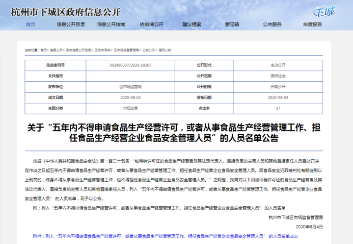 最重要的还是建立禁入者名单库,保证这批人员无法在下城辖区内再从事食品相关行业。