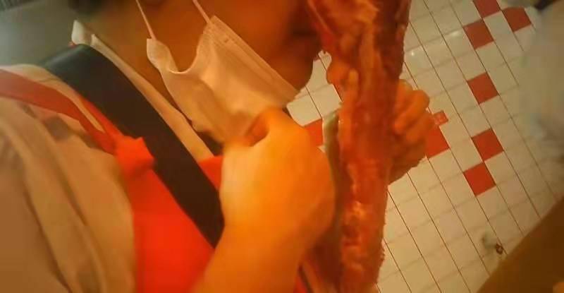 记者在调查中发现,不同的员工对于异味肉品的处理在尺度上也是不同的,领班整体会要求高一些,对于一些明显发黏,变质发臭了的排骨会要求撤下柜台,直接报废。但因为销售额跟奖金挂钩,员工们更倾向于能多卖点儿就多卖点儿,“不然哪儿来的奖金”。