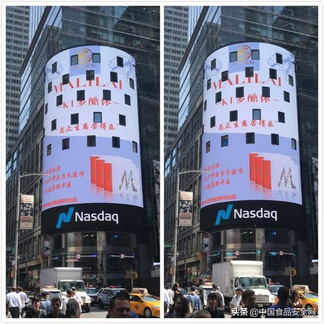 据悉,马利来实业有限公司曾在2018年5月16日登陆美国纽约时代广场上的NASDAQ宣传产品。而在美国纽约广场抛头露面,走向国际的,正是被证实虚假宣传的KI多醣体!