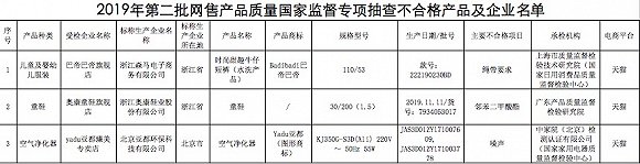 近日,国家市场监督管理总局网站通报了2019年第二批玩具等16种网售产品质量国家监督专项抽查情况。本次抽查共检验894批次产品,主要聚焦儿童用品、电子电器,及“双11”期间销售量较多的日用消费品,涉及天猫、拼多多、淘宝网、网易严选、京东商城、1号店、当当网、国美电器、蘑菇街、唯品会、抖音、苏宁易购等多家电子商务平台。