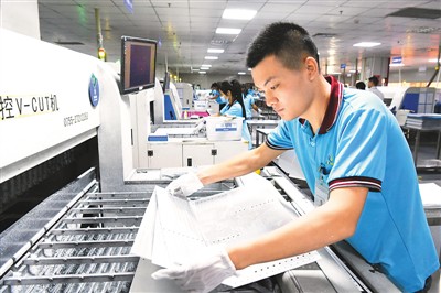 在国家“六稳”“六保”等系列政策支持下,位于江西省赣州市章贡区内的金顺科技有限公司克服疫情带来的种种不利因素,积极抢占国际市场,目前企业已开足马力赶制出口产品。图为该企业员工在生产线上赶制出口产品。 |