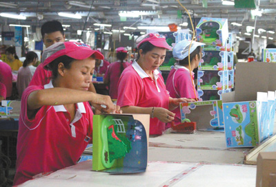 图为奥飞娱乐公司的玩具生产场景。 |