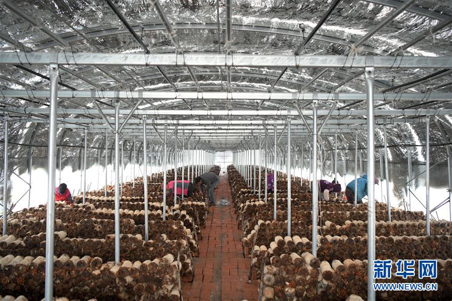 10月11日,在明水县兴仁镇石人村的食用菌种植基地大棚中,工人在采摘滑子蘑。 近年来,地处大兴安岭南麓集中连片特困地区的黑龙江省绥化市明水县发展食用菌产业,建起多个食用菌种植基地,带动当地建档立卡户脱贫增收。