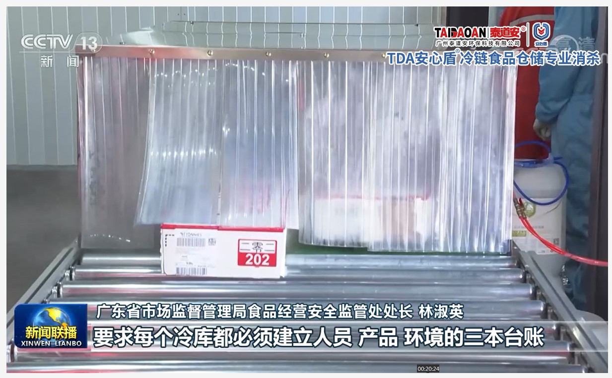 广州泰道安环保科技有限公司推出的安心盾低温货物消杀系统,其设备采用了"全新轨道式自动立体六面消杀技术",可以对冷链商品、进口生鲜货物、产品包装、快递包裹行李等通过消毒仓进行全方位的消杀(包括包装皱褶部分);符合国家《进口冷链食品预防性全面消毒工作方案》的要求;并于12月获CCTV-1央视晚间新闻联播,CCTV-13央视新闻频道关注报道。目前,第三代安心盾低温冷链货物消杀系统已率先在广东地区冷库定点投放展开消杀作业。