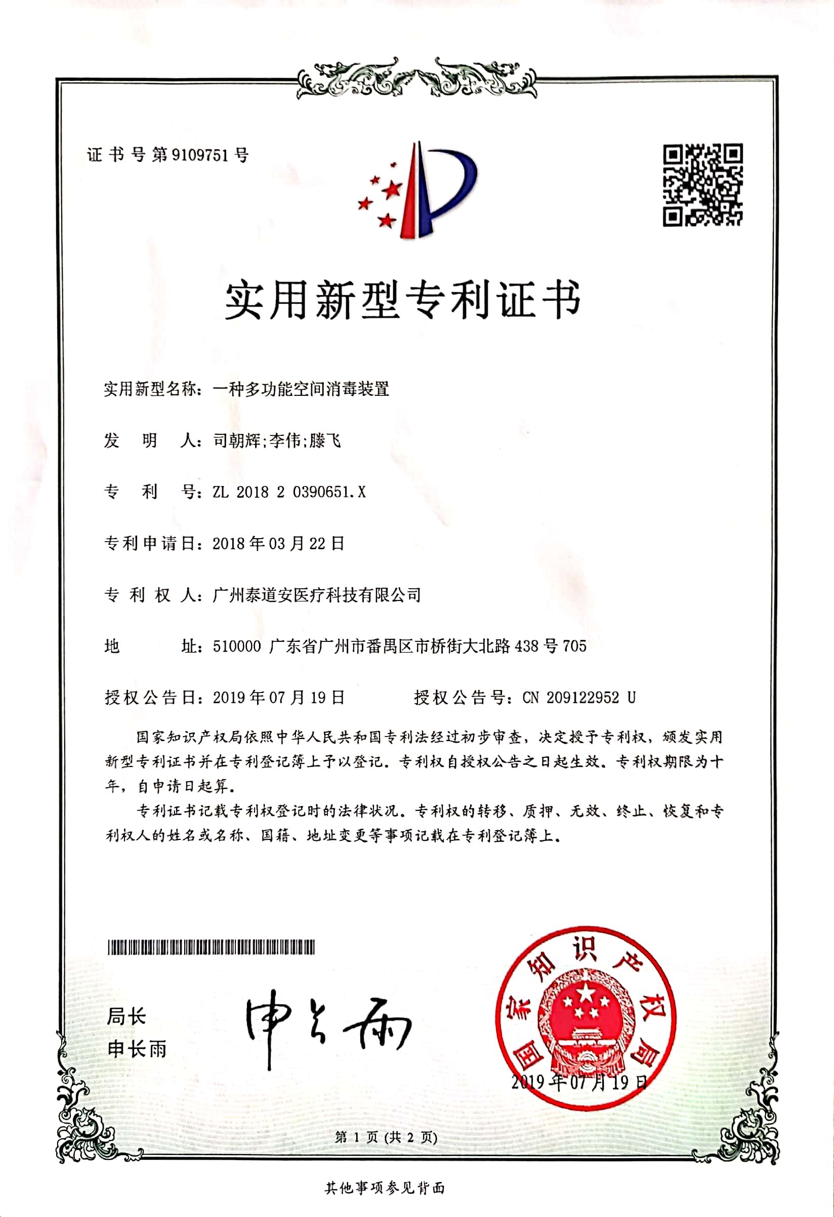 专利产品标号:一种多功能空间消毒装置ZL 2018 2 0390651.X