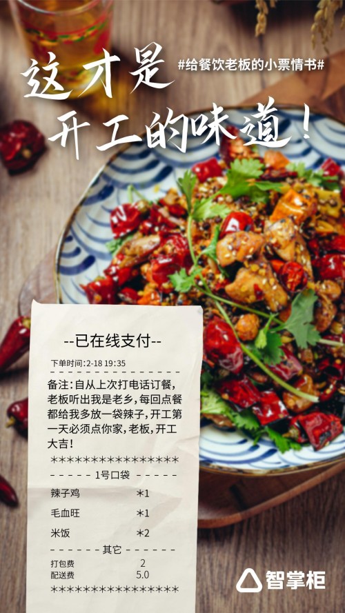在异乡的土地上拼搏的人们,思念的是只有家乡才有的特别味道;在每一个日夜兼程努力的夜晚,食物带给人们的,更是无法替代的幸福感的终极来源。随着餐饮业的全面复产复工,属于餐饮老板们的这份独特感动与温度,也被智掌柜用最温情的方式,牵起了一条属于消费者、食客与餐饮老板的一条沟通桥梁,也让无数餐饮老板们感动中带着自豪——