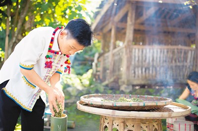 经过改良的酸茶品质提升明显。2017年,德昂族酸茶制作技艺入选第四批云南省级非物质文化遗产,赵腊退正是这项技艺的传承人。在他的推广带动下,酸茶已成为三台山的招牌产品,2019年一年卖茶就有3万多元的收入。不仅如此,他还收了10多个徒弟。酸茶的一炮走红让赵腊退意识到:“民族文化只有与市场接轨,才有生命力。”